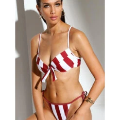 Haut de maillot de bain push up, imprimé rayure qui stylise visiuellement votre silhouette.