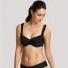 Haut triangle ajustable en microfibre. Imprimé fines rayures. Broderie anglaise sur bande volantée. Coques amovibles. Médaillon BB. Doublure douce et confortable. A nouer dans le dos et autour du cou. A associer avec le bas AZUR. Disponible du 36 au 44 Matière principale : 80% Polyamide, 20% Elasthanne – Doublure : 100% Polyester