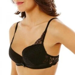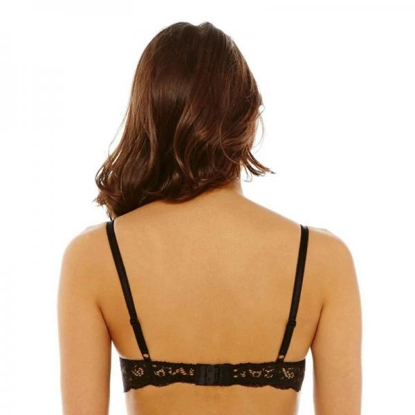 Soutien-gorge avec coque en microfibre recouvert de dentelle effet foulard. Finition de microfibre plissĂ©e en guise de basque avec un nĹ“ud fantaisie en gros grain Ă l’entrebonnet. DĂ©part de bretelle en dentelle puis bretelles fantaisies Ă©lastiquĂ©es et rĂ©glables. Elastique fantaisie sur le haut des ailes. Baleines sur les cĂ´tĂ©s pour plus de confort. Ailes en tout dentelle. Agrafes 2×3 positions. Disponible du 85B au 95C